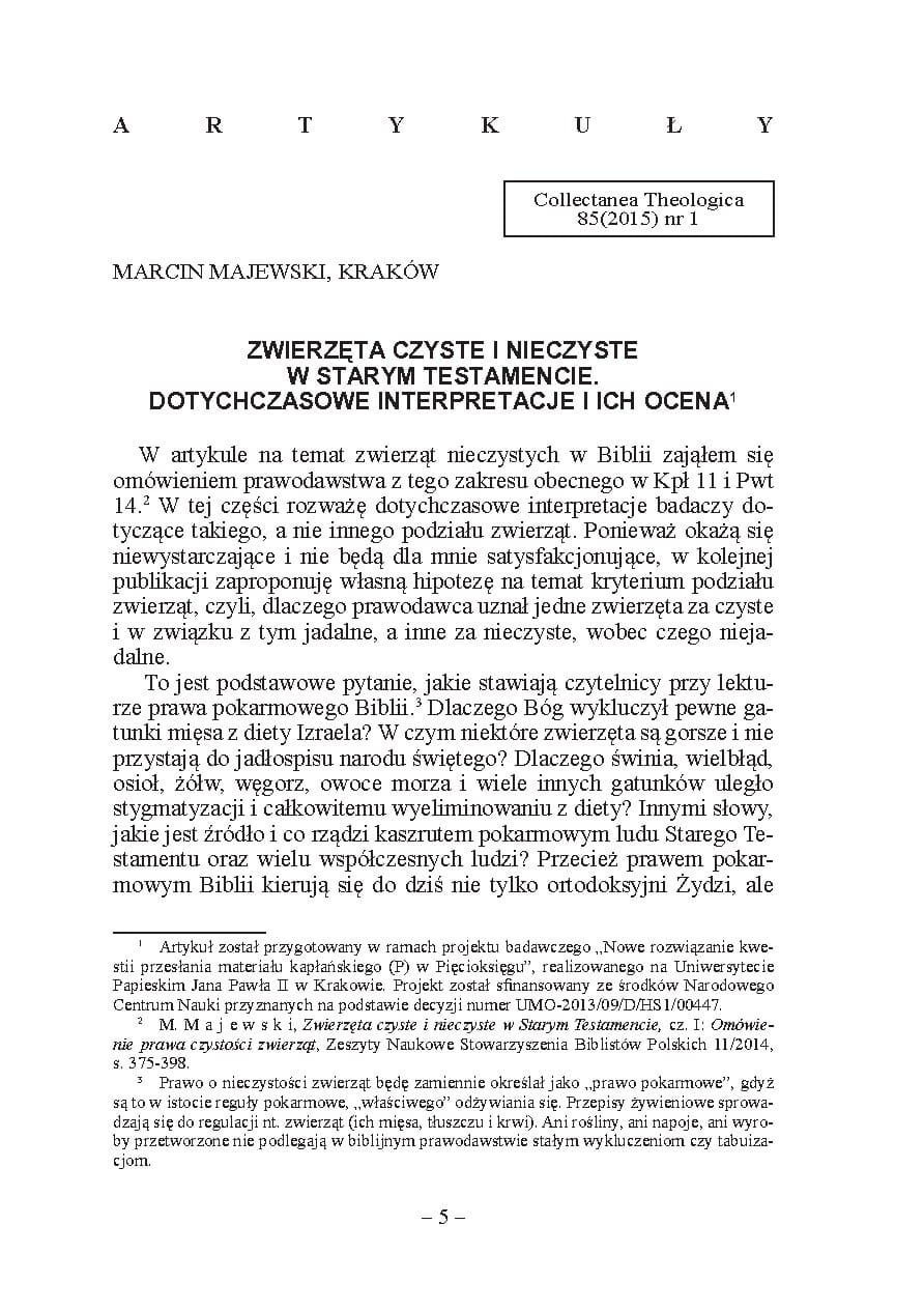 Na tym tle Majewski przegląda najważniejsze dotąd zaproponowane interpretacje prawa pokarmowego – od starożytnych po współczesne – pokazując ich mocne i słabe strony. Cytuje przy tym liczne komentarze biblijne (m.in. Biblia Paulistów, Katolicki komentarz biblijny), gdzie autorzy wprost przyznają, że „trudno jednoznacznie ustalić” zasadę podziału i że możliwe kryteria (np. związek z kultami pogańskimi) pozostają hipotezą. Pojawia się także wątek klasycznych prac Mary Douglas („Purity and Danger”), które wydawały się kiedyś przełomowym rozwiązaniem, ale same autorka i późniejsza krytyka pokazały ich ograniczenia.